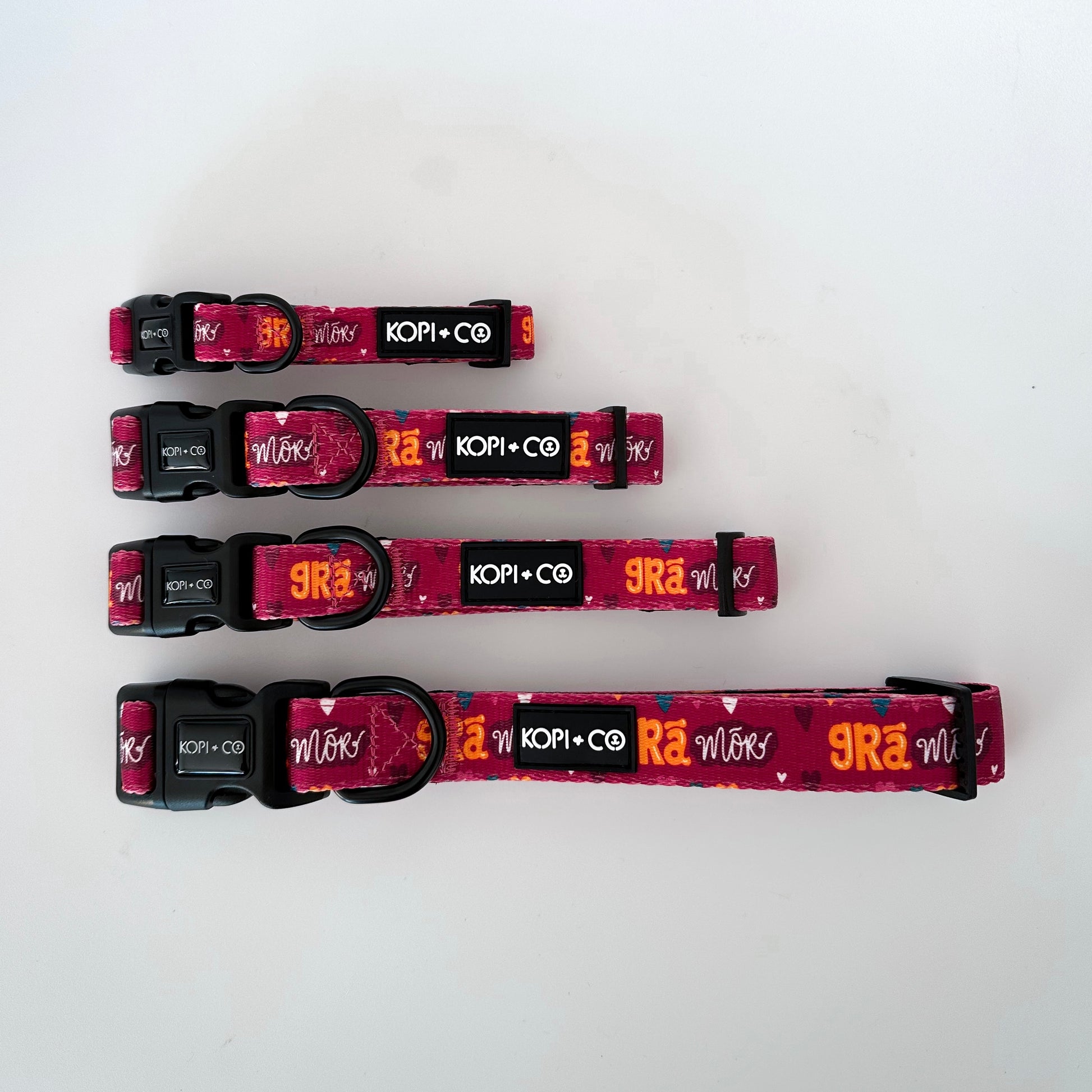This collar feature our cosy Grá Mór print and neoprene paddling, it looks good and feels great too: made from polyester webbing and neoprene padding for extra comfort, this collar is durable and easy to care for.